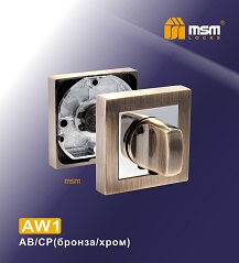 Главная / Дверные ручки на квадратной накладке МСМ / Ручки и накладки серии "А" / AW1 AB/CP Накладка-фиксатор AW1Ручка и накладка литые. Материал ЦАМ. Накладка крепится только в виде квадрата и только саморезами (идут в комплекте). Стяжками может крепиться с механизмом L45 и с замком ML85B. Квадрат 8 мм разрезной. Цена за комплект (2 ручки). | ||||||||||||||||||||||||||||||||||||